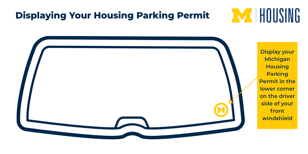 - Michigan Housing parking permits are round window cling stickers that must be displayed on a front windshield in the lower corner of the driver side.